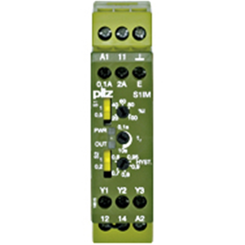 Relais de surveillance de tension pour surveillance min. et max. valeurs de tension; 12 plages de mesure 0,1 – 500 V AC / DC sélectionnables; 0,40 – 400 Hz; Largeur: 22,5 mm; UB 24 V CC. Bornier fixe à vis