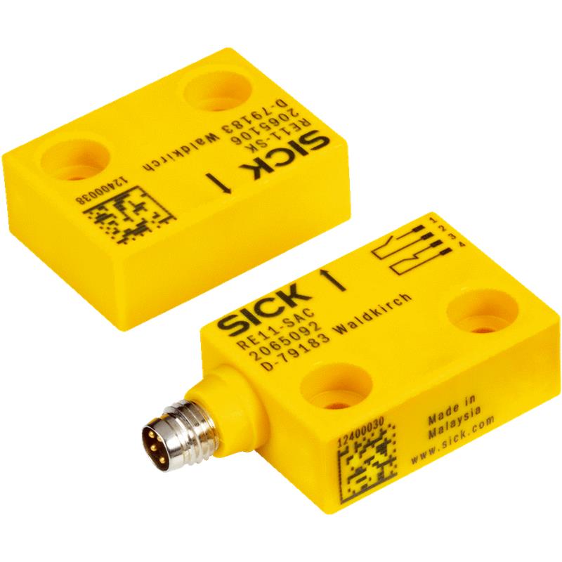 Les interrupteurs de sécurité magnétiques RE11, RE21 et RE31 sont équipés de contacts NO/NF antivalents déclenchés directement avec des actionneurs magnétiques codés. Les interrupteurs de sécurité magnétiques sont utilisés dans les zones fortement encrassées. Ils sont faciles à nettoyer ce qui leur permet de satisfaire à des standards d’hygiène élevés. Leur principe de fonctionnement permet des tolérances élevées, c’est pourquoi ils conviennent là-où il est difficile d’obtenir un guidage précis de la protection.